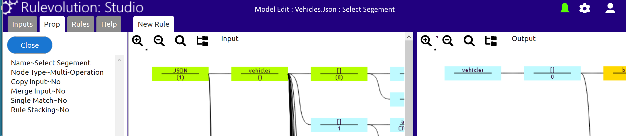 Drag to the Output window the root and children of one of the segments (holding the Ctrl when dropped will copy all the children (in the output window, the yellow are the copied nodes, which cannot be used for further behaviour within this node)